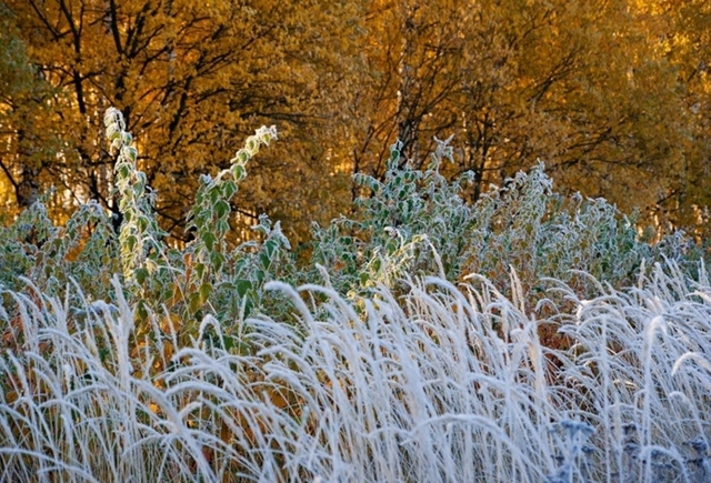 Когда, проснувшись утром, первый раз увидишь на траве изморозь, запиши у себя в дневнике: «началась осень». С этого дня, вернее с этой ночи, потому что первый заморозок всегда бывает под утро, – всё чаще будут срываться листья с ветвей, пока не задуют ветры-листодёры, не сорвут с леса весь роскошный летний наряд. Исчезли стрижи. Ласточки и другие летовавшие у нас перелётные собираются в стаи – и незаметно, по ночам, отбывают в дальний путь. И вдруг – как память о красном лете – устанавливается вёдро: тёплые, ясные дни. В спокойном воздухе летят, серебрятся длинные паутинки. И радостно блестит в полях свежая молодая зелень.