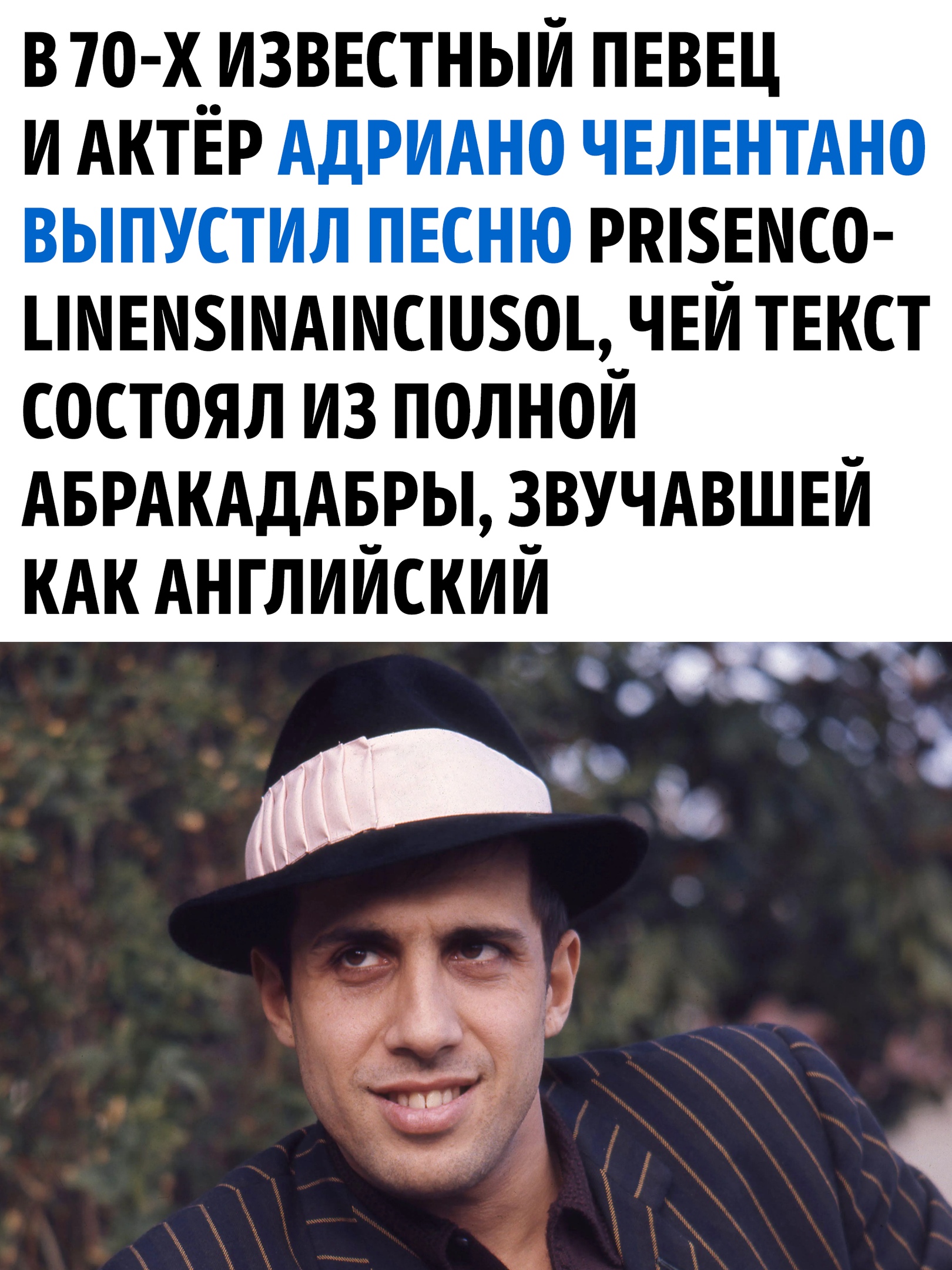 Адриано Челентано — настоящая легенда итальянской музыки и кино, человек с уникальной харизмой и особым юмором.