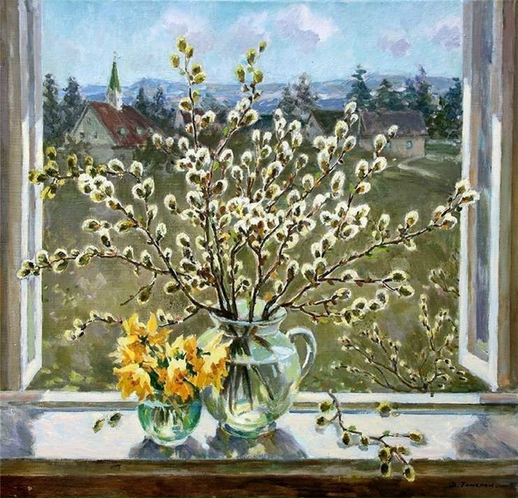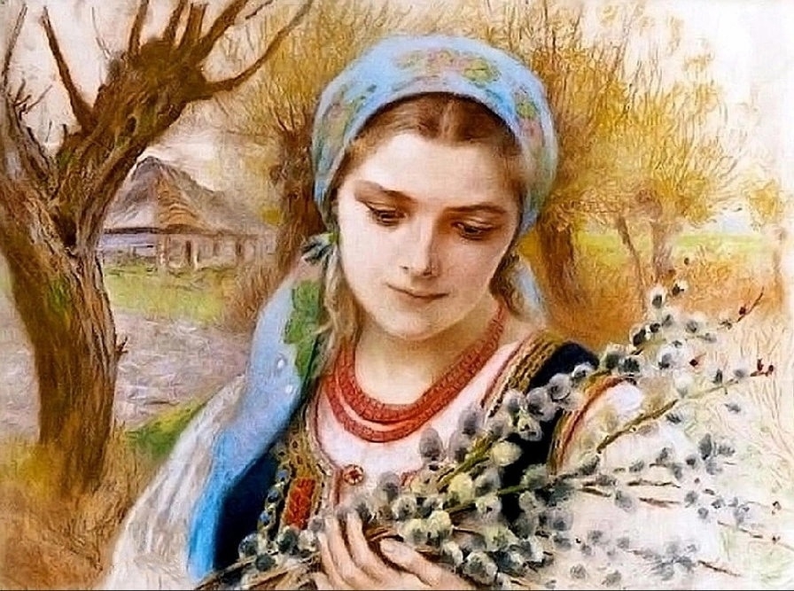 В апреле уж долги вечерние зори, рассвет рано. Ночные капели, проталинки, звенящие ручьи, распута по рекам, половодье.Таинственно-прекрасные недели Вербная, Страстная, Светлая, Радоница. Таинственное и прекрасное воскресение природы. Таяние снегов, вскрытие рек, прилет птиц. Настроение вот этих месяцев марта и апреля. Юность. Весна. Воды. Тихий рассвет. Тихость природы, тихая радость в сердце.