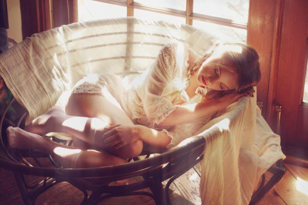 Колени сведены.