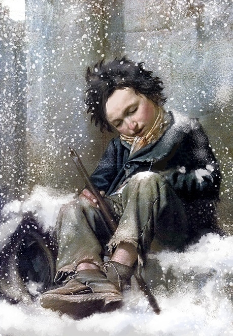Только маленький мальчик медленно бредет по заснеженной улице. Он то и дело достает из карманов ветхого пальто озябшие покрасневшие руки и пытается согреть их своим дыханием. Затем снова засовывает их поглубже в карманы и идет дальше. Вот останавливается у витрины булочной и разглядывает выставленные за стеклом кренделя и баранки.