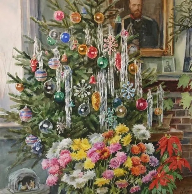 Рождественские акварели Великой княгини Ольги Александровны Романовой (сестра имп. Николая II).