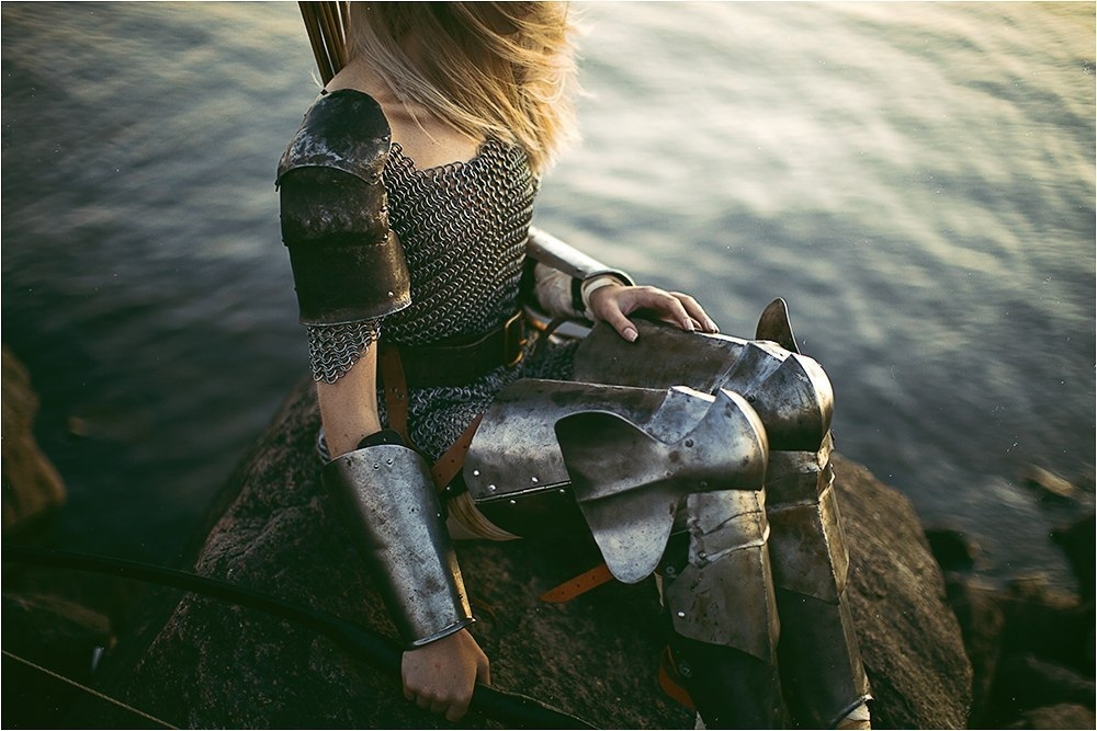 Девочка-воин молча стоит одна